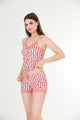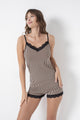 Pamuklu Ince Askılı Dantelli Şortlu Takım - 8250-1 Fuşya