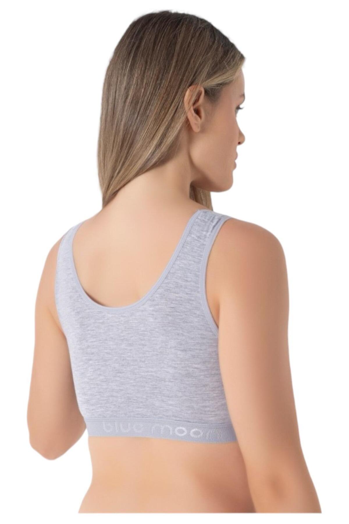 Kadın Tekli Basic Pamuklu Pedli Sporcu Büstiyer - 7444 Gri