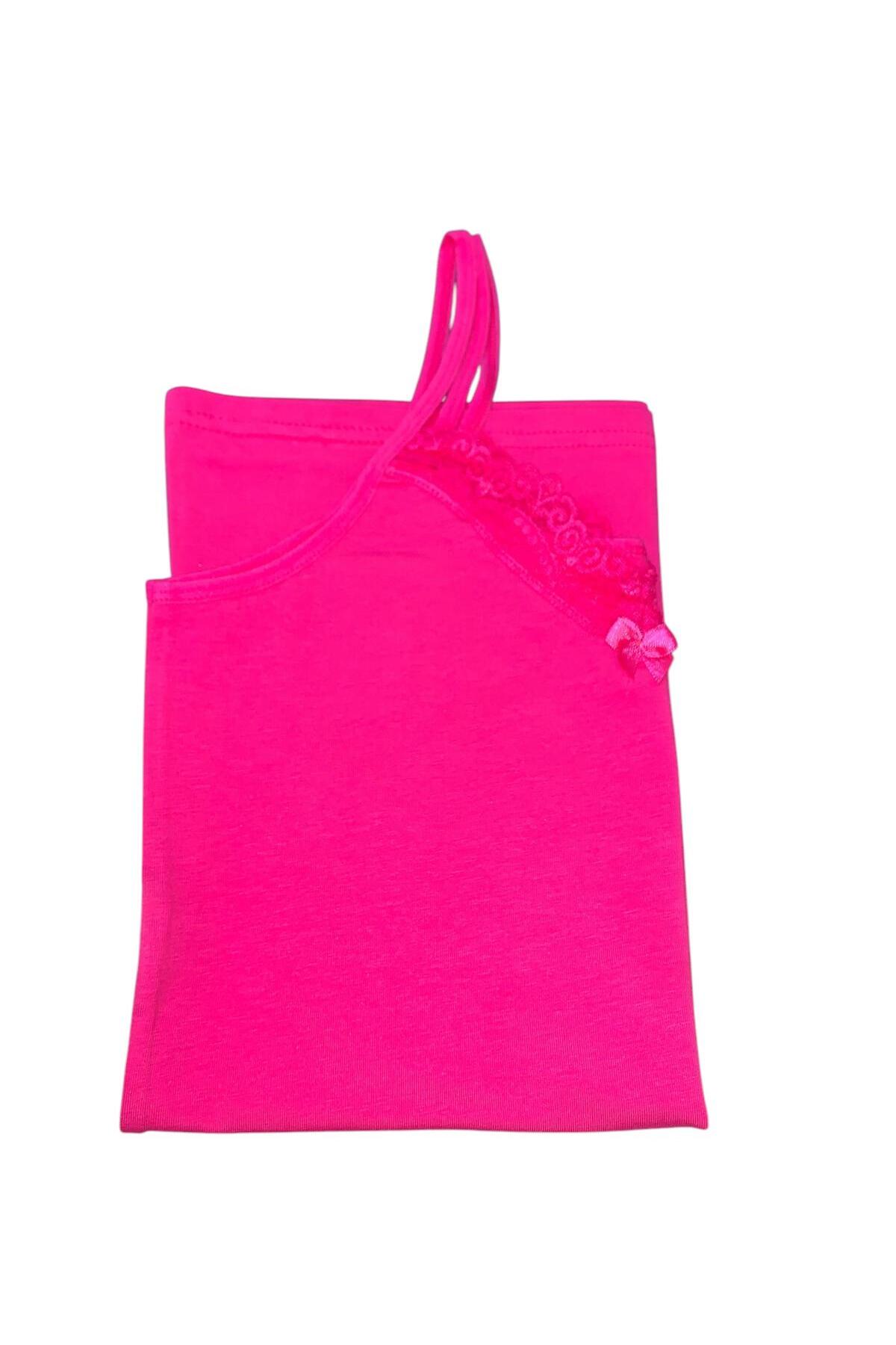 V Yaka Dantelli Tekli Atlet - 8000-1 Fuşya