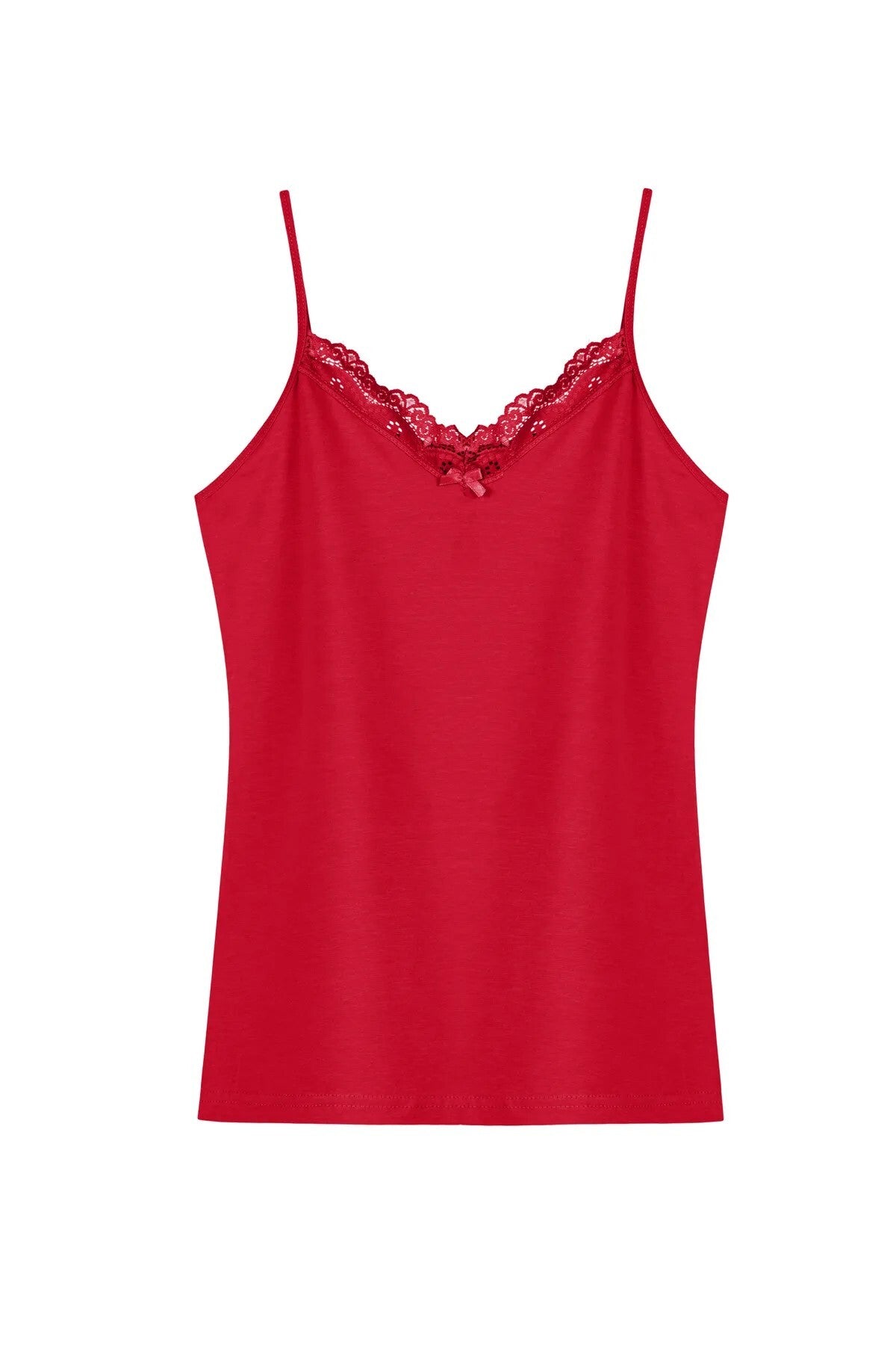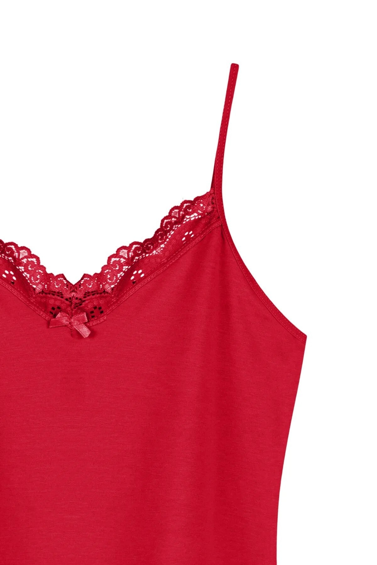 V Yaka Dantelli Tekli Atlet - 8000-1 Kırmızı