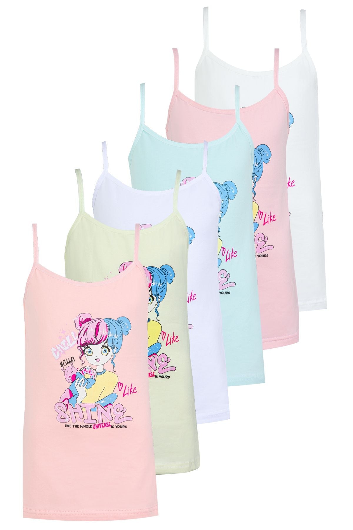 Kız Çocuk İp Askılı Atlet 6'lı - 6840-1 Baskılı-1