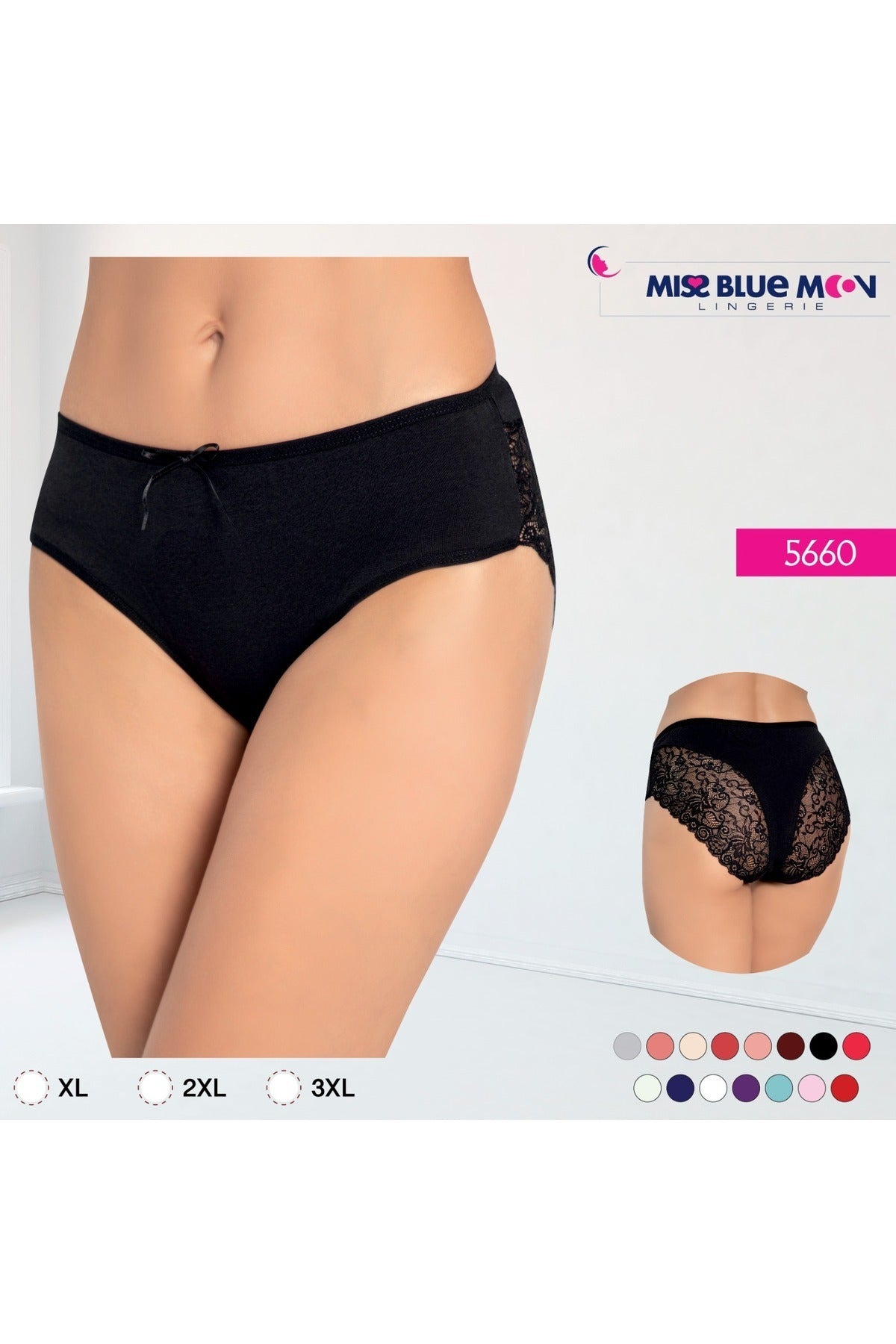 Arka Baklava Kesim Dantelli Bato 2'li Külot Siyah/beyaz 5660 - Renkli