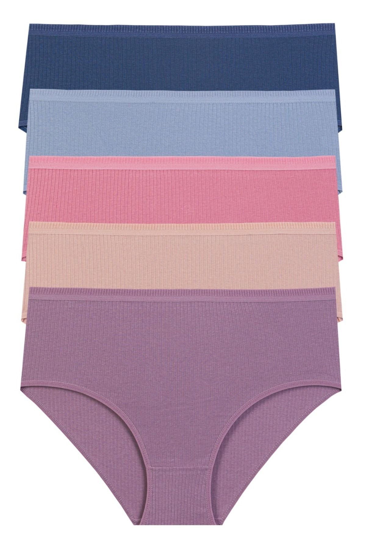 Kadın Fitilli Ribana Pamuklu Külot 5'li Paket - 5450 Antrasit