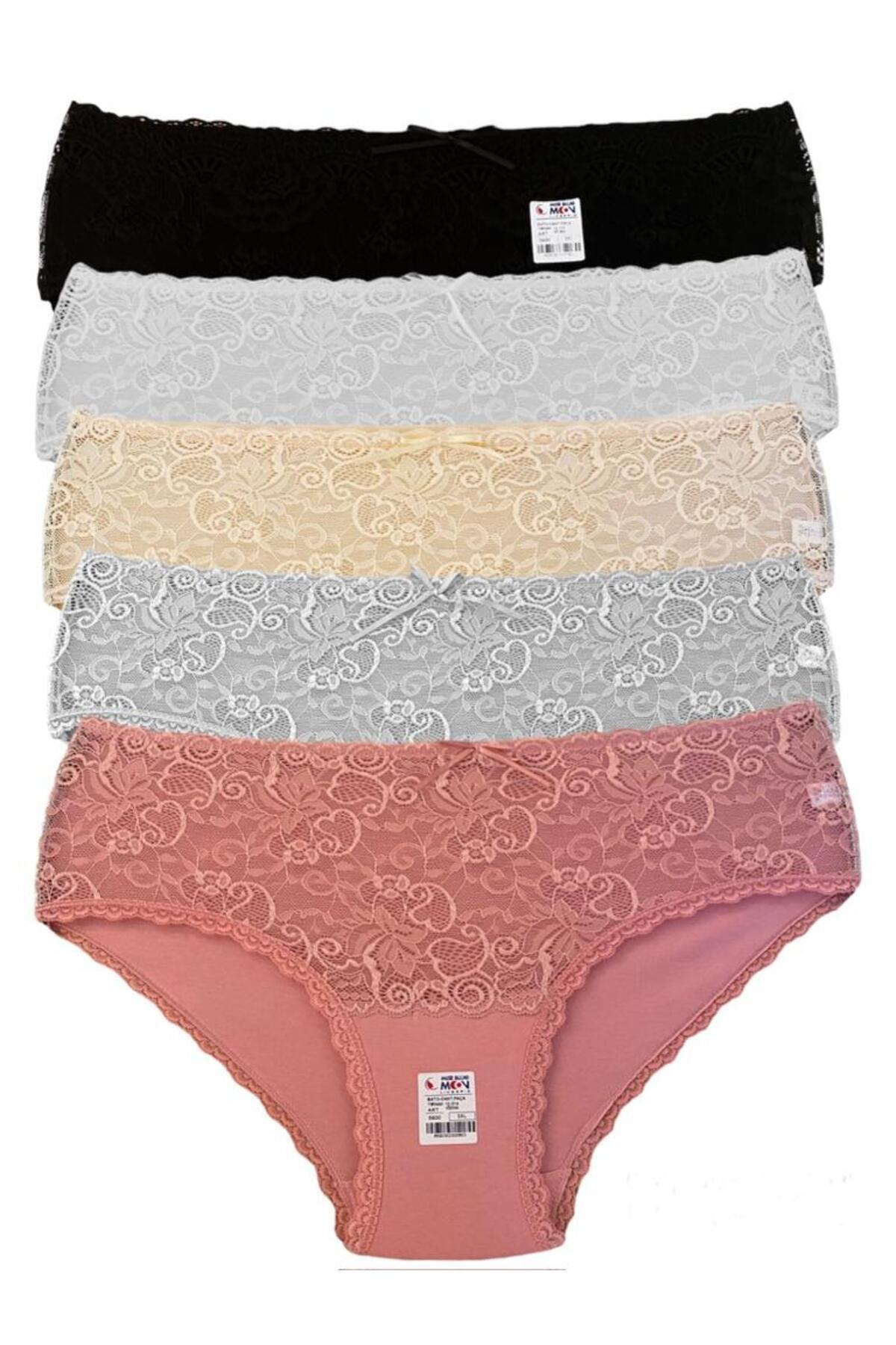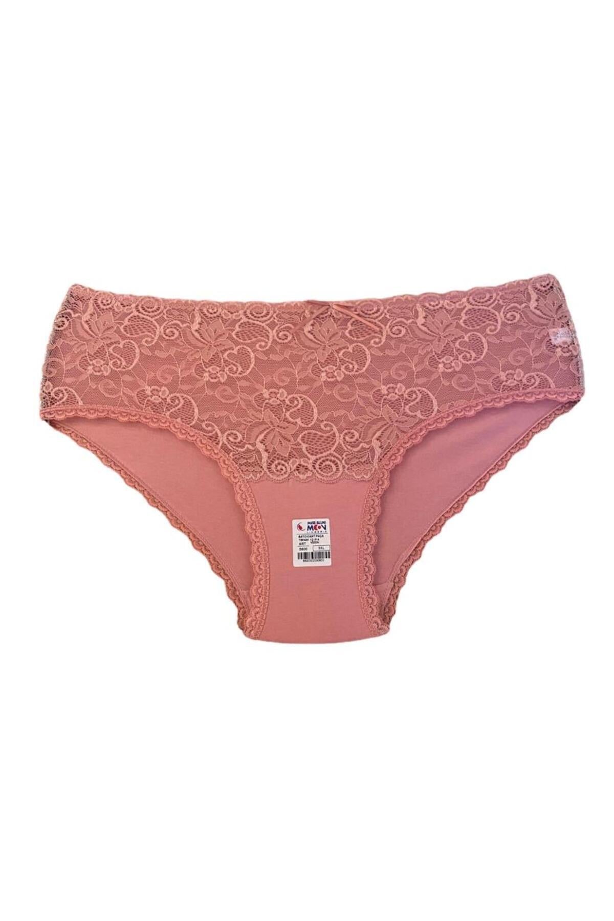Yüksek Bel Dantelli Bato 5'li Külot - 5600-1 Vizon