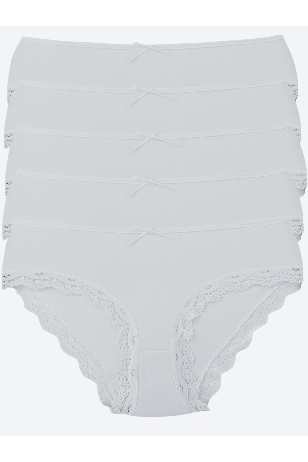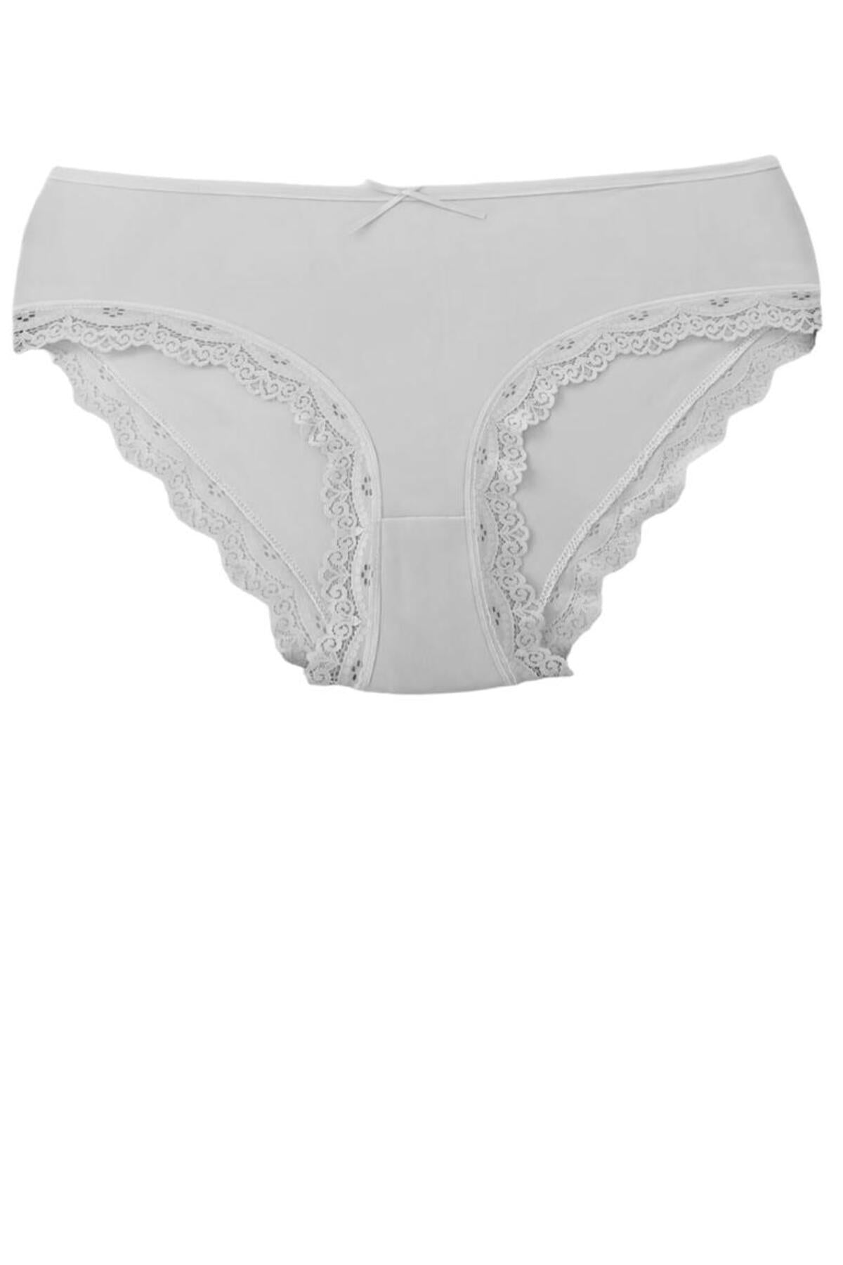 Yüksek Bel Dantelli Renkli Bato 5'li Külot - 5500-2 Beyaz
