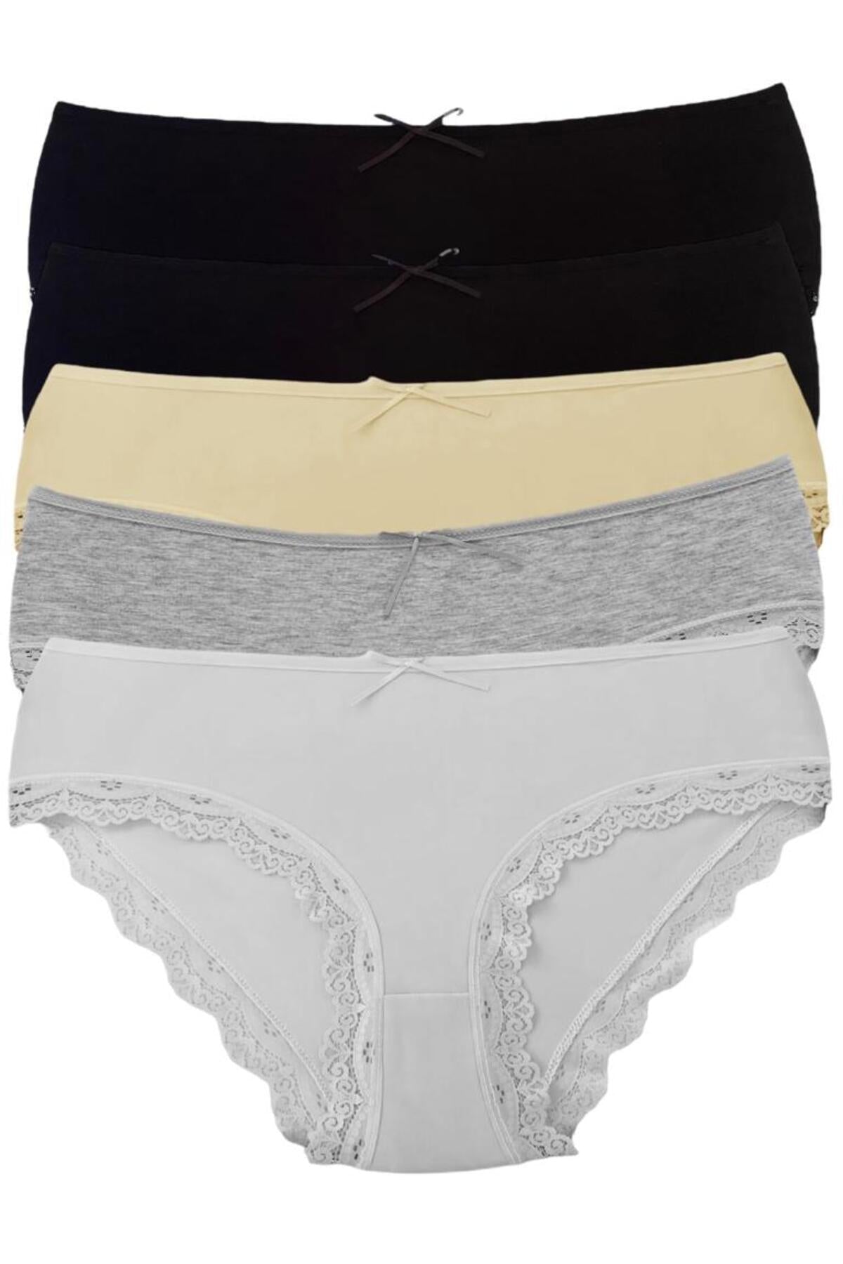 Yüksek Bel Dantelli Renkli Bato 5'li Külot - 5500-2 Renkli