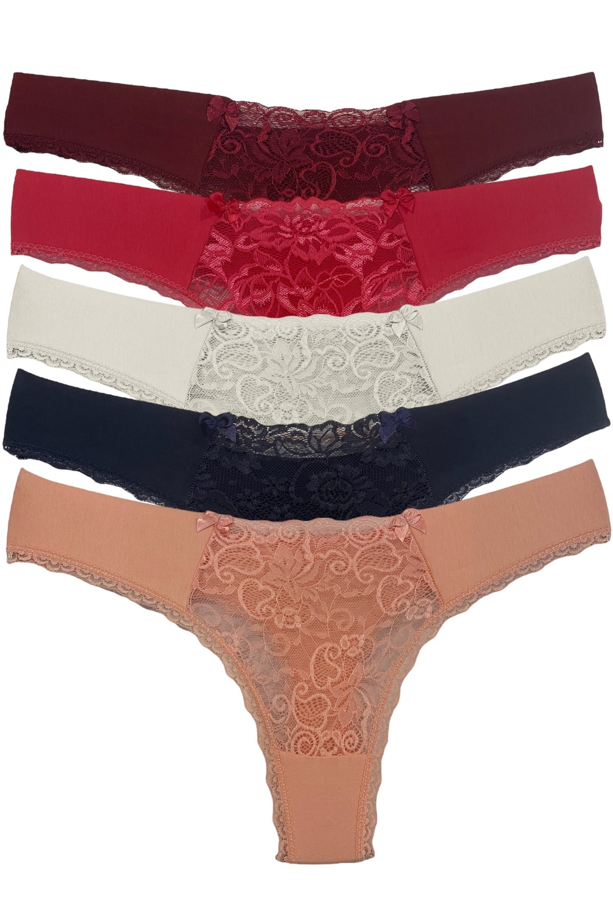 Dantelli Tanga 5'li - 1660-1 Bordo
