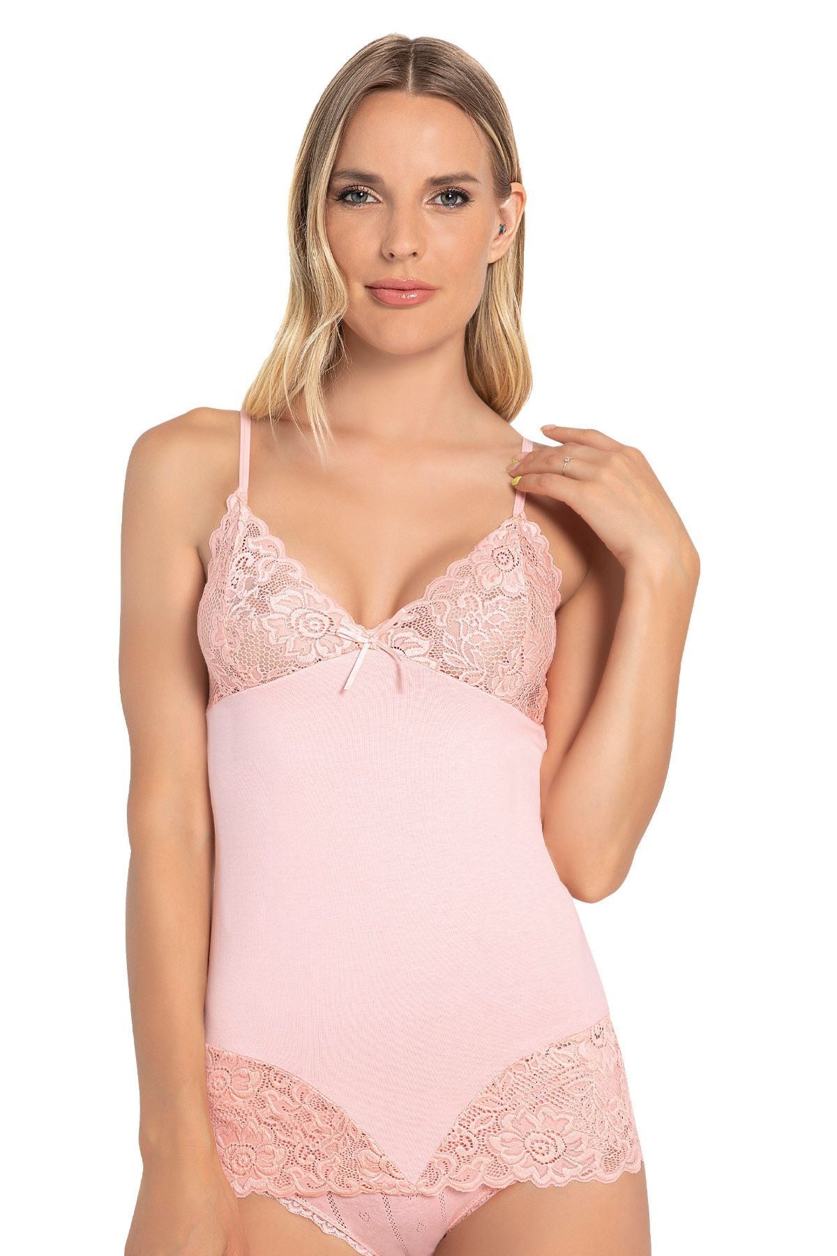 Göğüs ve Bel Dantelli İp Askılı Kadın Tekli Atlet - 8024 Toz