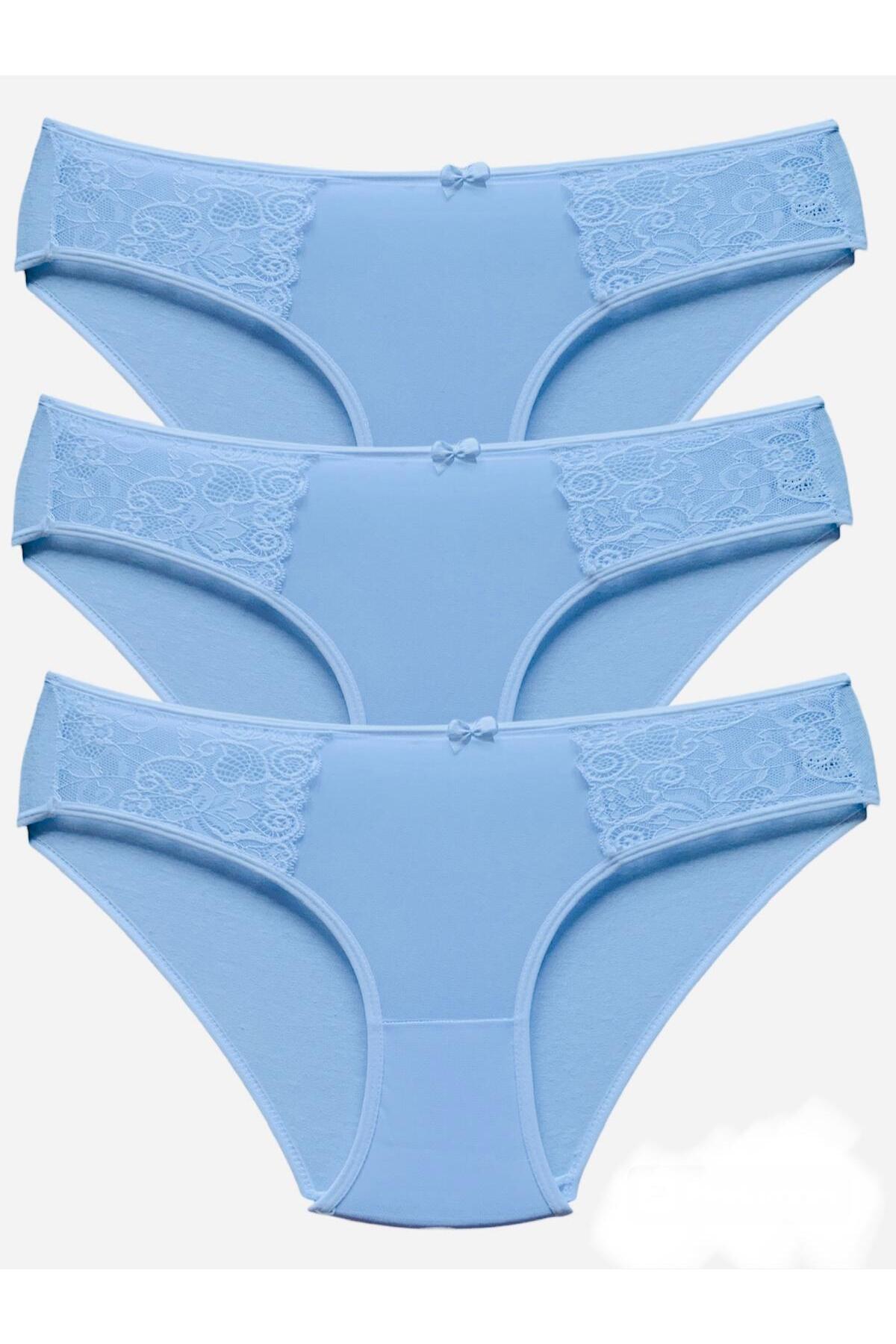İki Yanı Dantelli Önü Tül Külot 3'lü - 3180 Beyaz