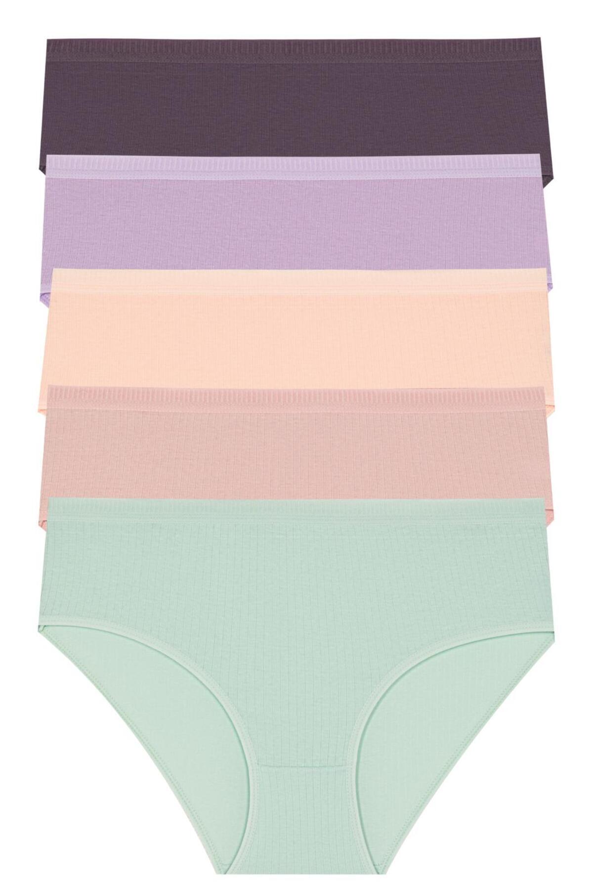 Kadın Fitilli Ribana Pamuklu Külot 5'li Paket - 5450 Mint Grubu