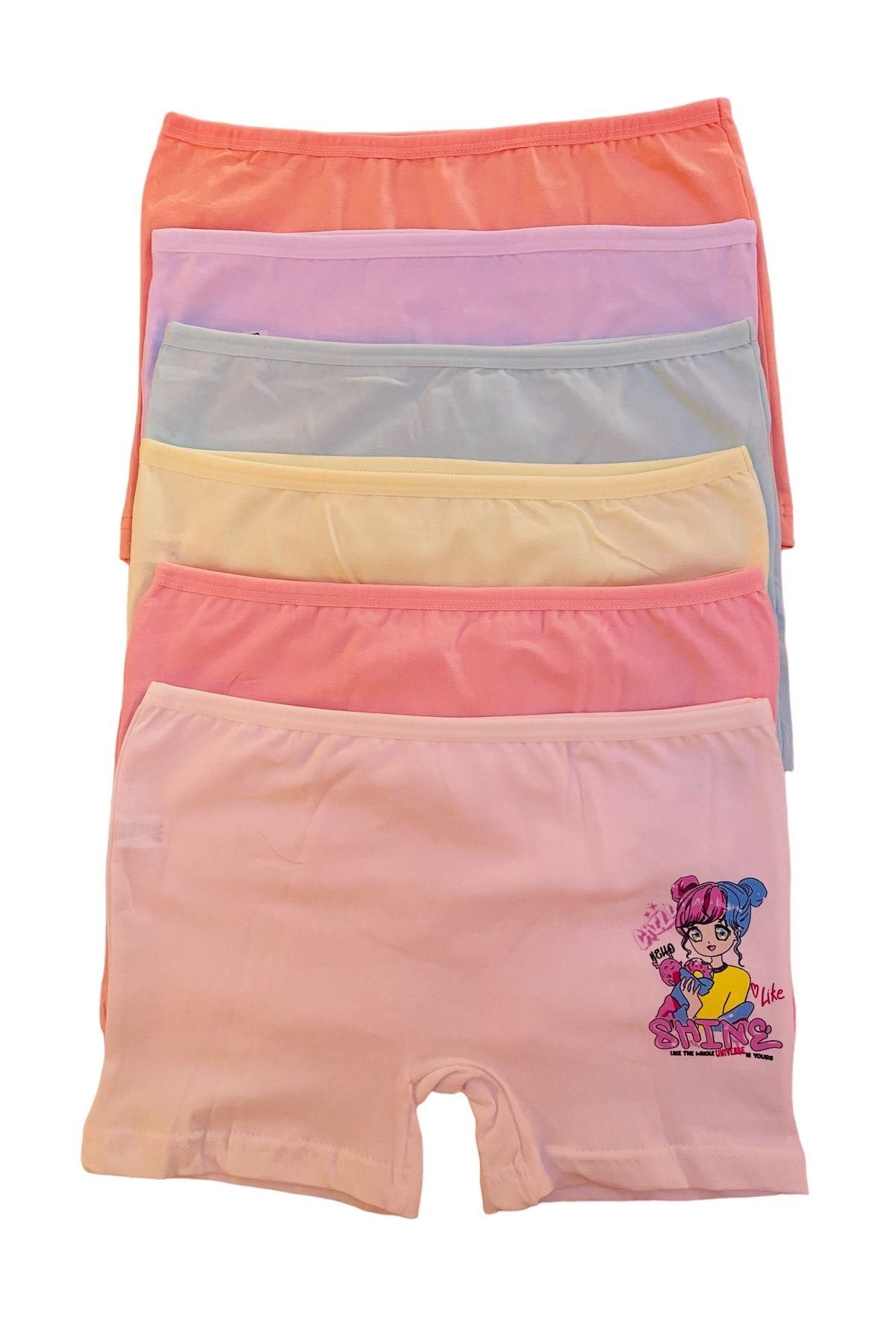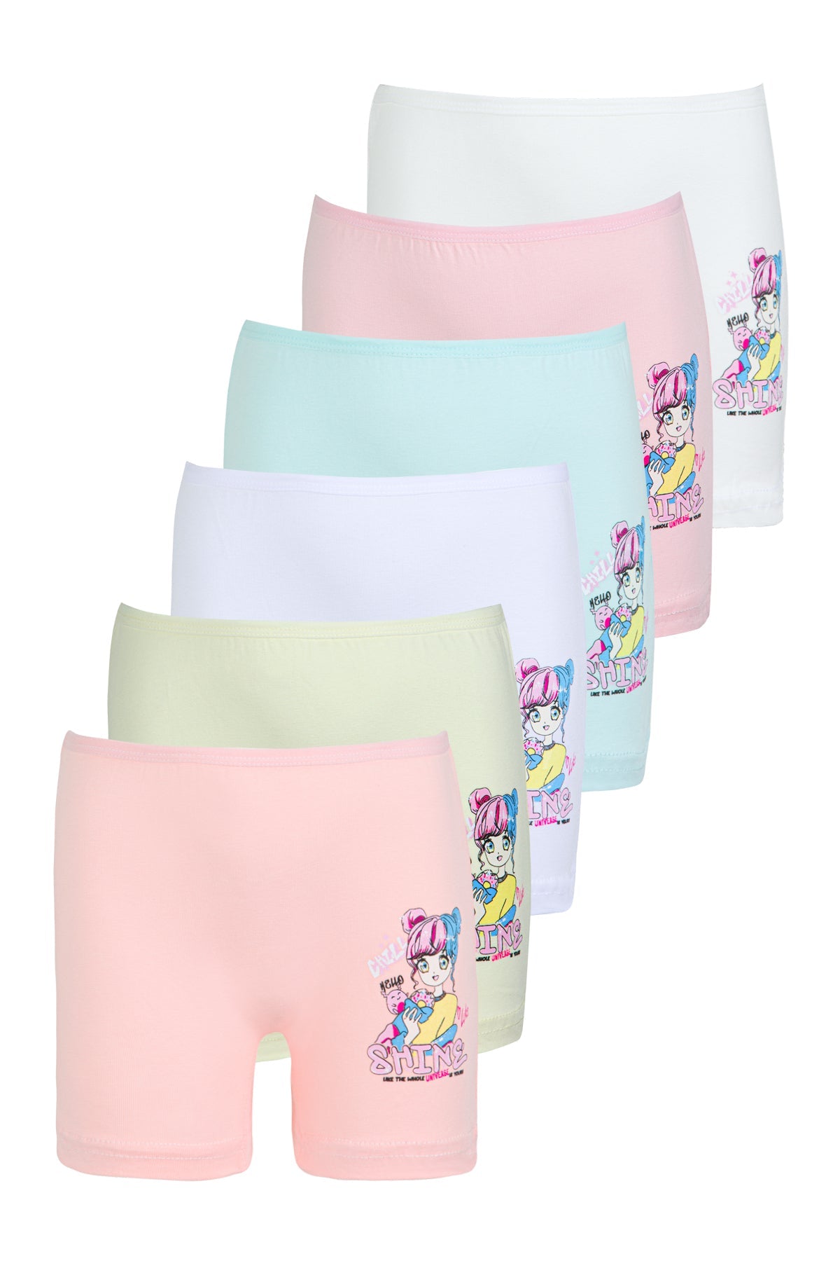 Kız Çocuk Renkli Baskılı ŞORT 6'lı - 6110 Ekru