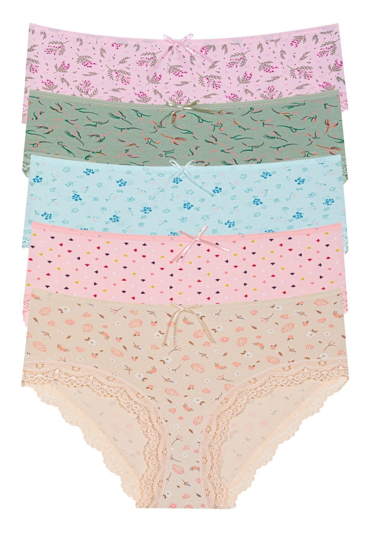 Yüksek Bel Dantelli Baskılı Bato 5'li Külot - 5500-1 Baskılı