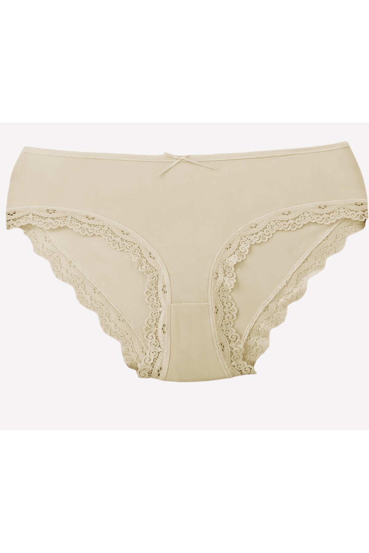 Yüksek Bel Dantelli Bato 3'lü Külot - 5500-3 Ten