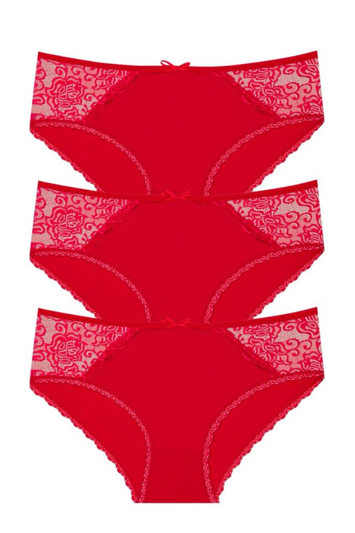 Yüksek Bel Dantelli Bato Yılbaşı Özel Koleksiyon Kırmızı Külot 3'lü - 5160 Kırmızı-5160