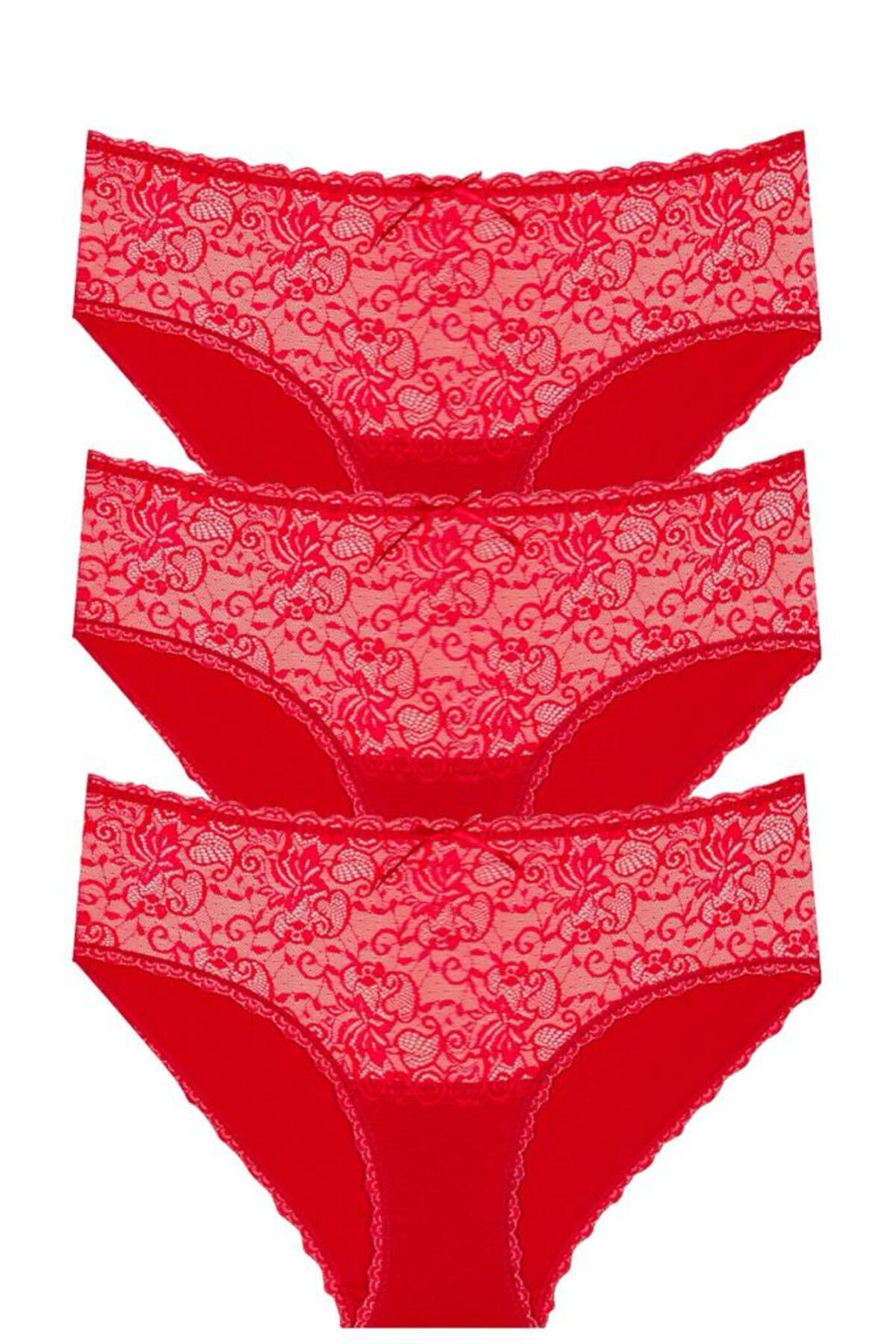Yüksek Bel Dantelli Bato Yılbaşı Özel Koleksiyon Kırmızı Külot 3'lü - 5600 Kırmızı-5600